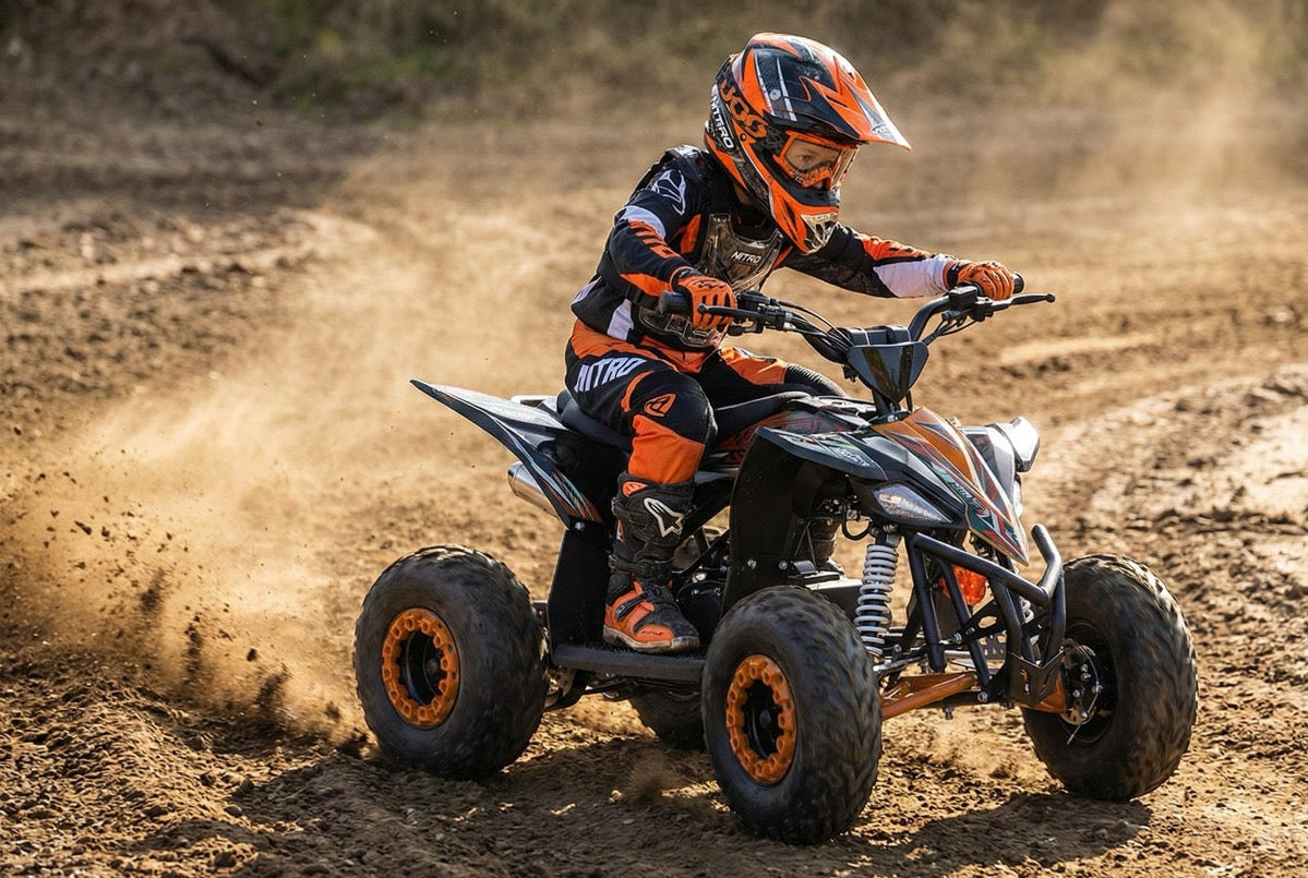 Remporte un Quad Nitro 1500W Eco Replay DLX 6 Orange, un mini-quad électrique neuf au design sportif, pensé pour le plaisir et la sécurité des enfants.